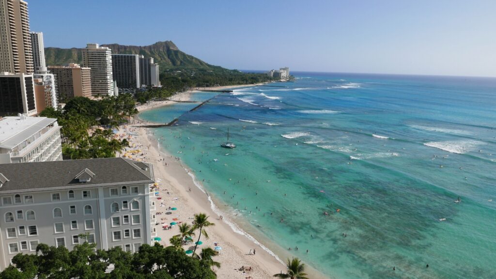 確かにハワイの海に、最初にいくならワイキキビーチでしょう。