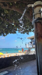 シャワーも水しか出ませんが、ハワイなら年中水でも大丈夫。